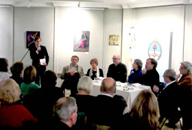El Cónsul Aldo López presenta el acto. En la mesa: Mario Satz, Teresa Martín Tafarell, Carlos Vitale, Neus Aguado, Dante Bertini, Jonio González, Osias Stutman.